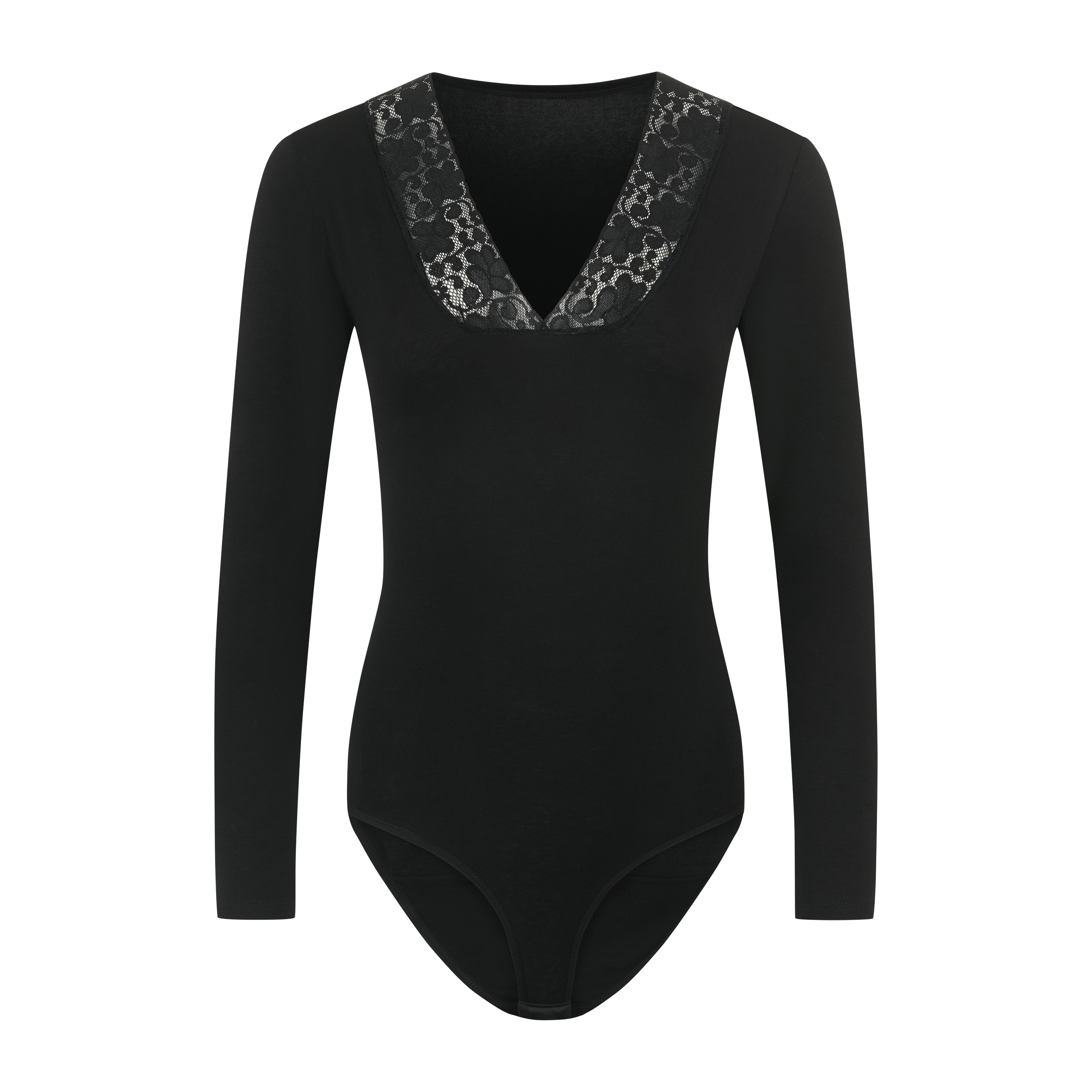Damen Langarm Body aus Baumwolle mit Spitzendekolleté