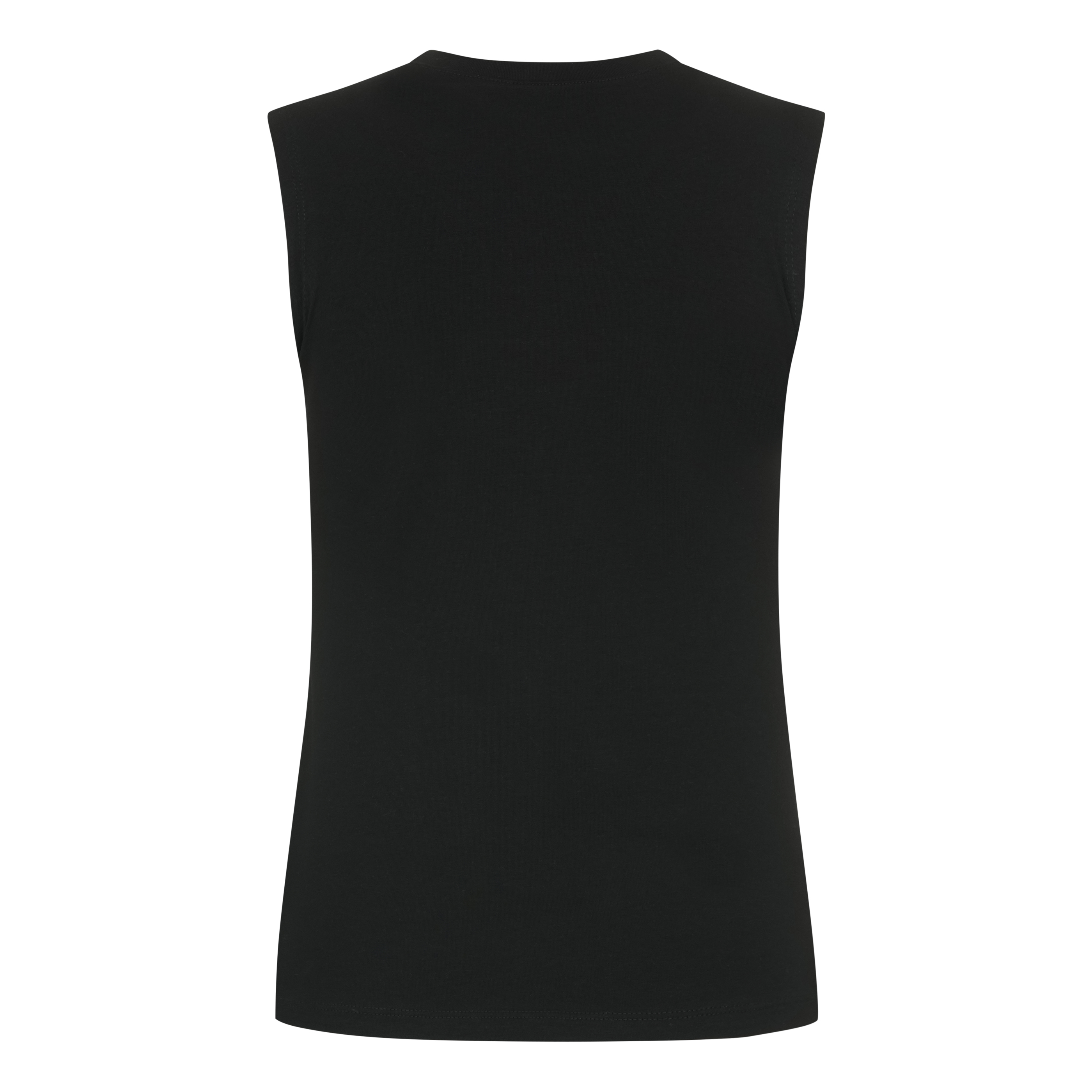 Modell Damen-Shirt ohne Ärmel, hoher Rundhalsausschnitt